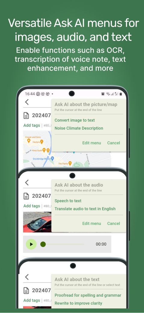 Utilising customisable AI settings for intelligently processing text, images, audio and videos.